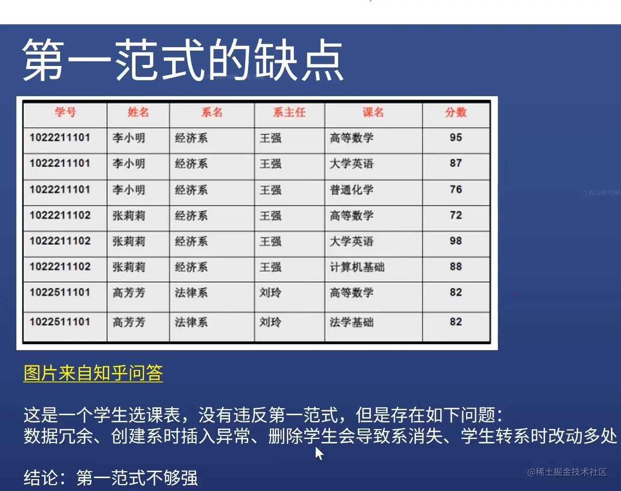 一个表不能有两层依赖,给出学号就能确定系名:系名依赖学号