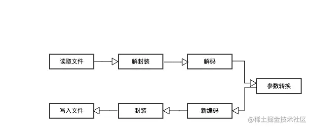 - 封装(Muxing) 其中需要进过6个步骤,具体如下: