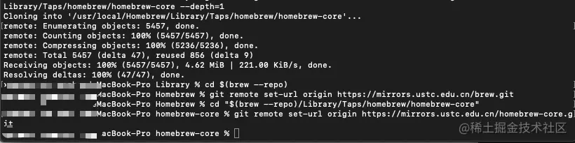 git clone git://mirrors.ustc.edu.cn/homebrew-core.git/ /usr/local/Homebrew/Library/Taps/homebrew/homebrew-core --depth=1