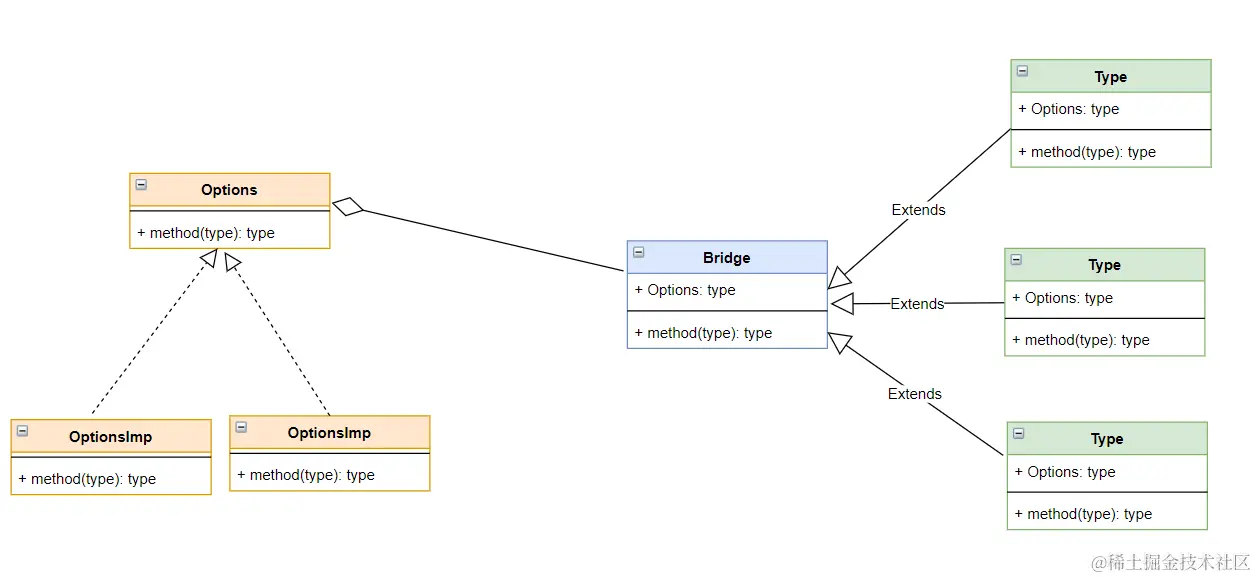 我们来看一下桥接设计模式的UML图