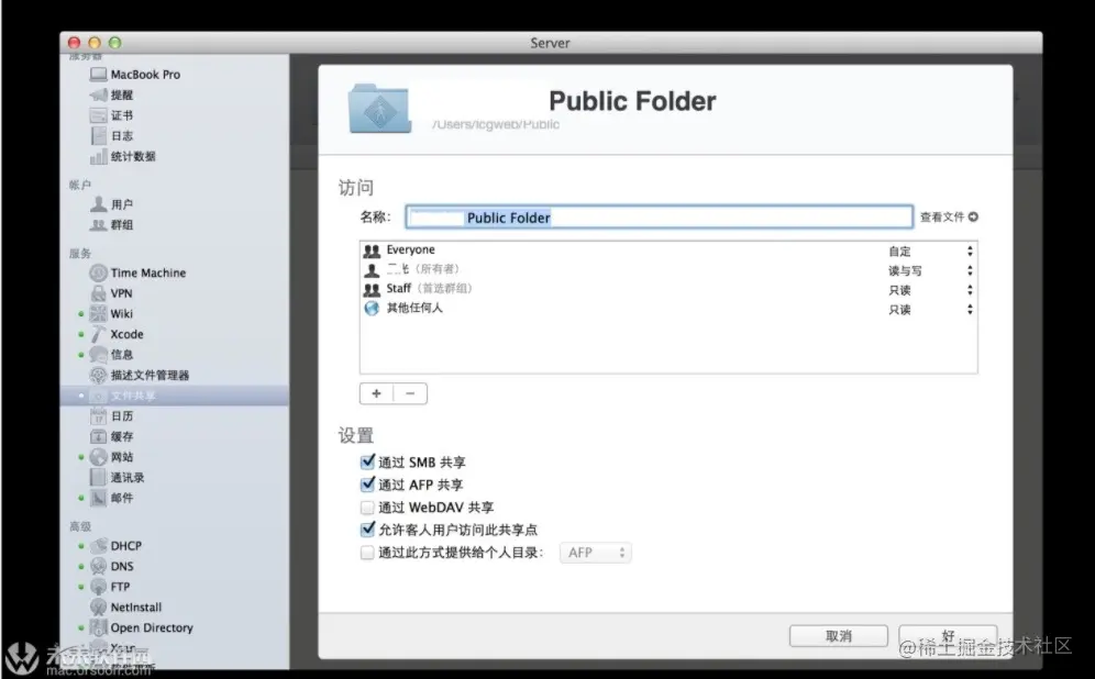 这里介绍的目录服务Open Directory服务相当于苹果版本的微软Active Directory。