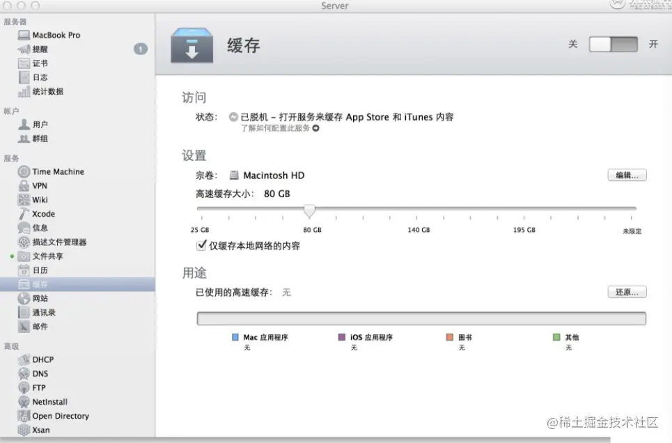 本地缓存的应用程序、软件更新和OS X恢复映像等