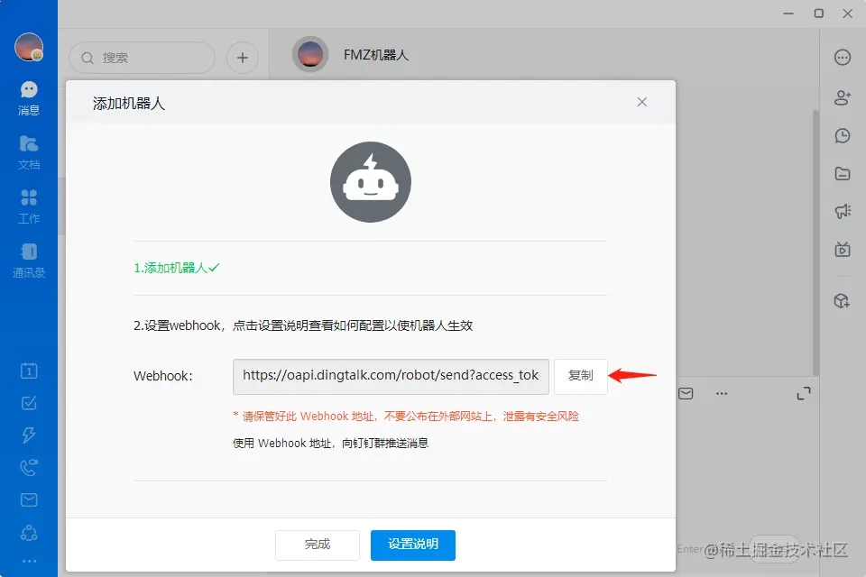 第2步:添加钉钉群机器人