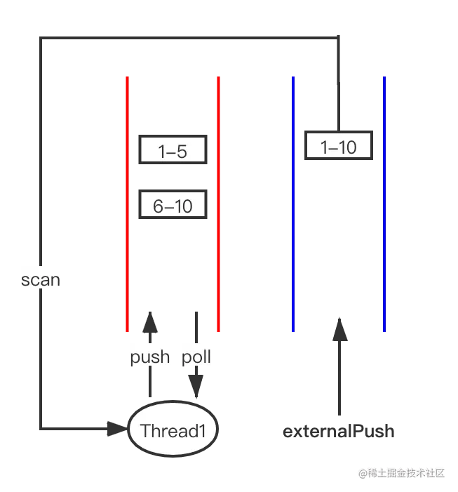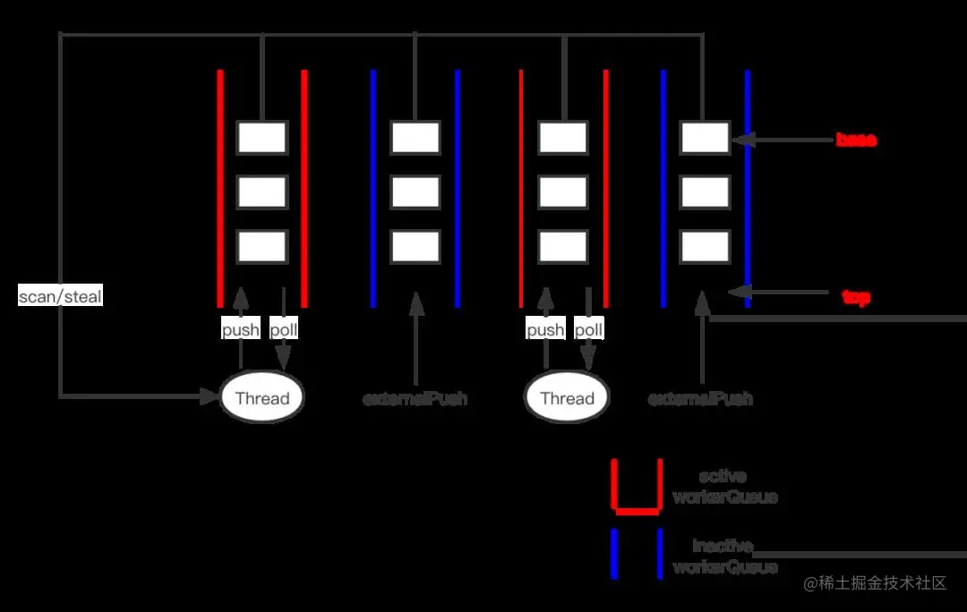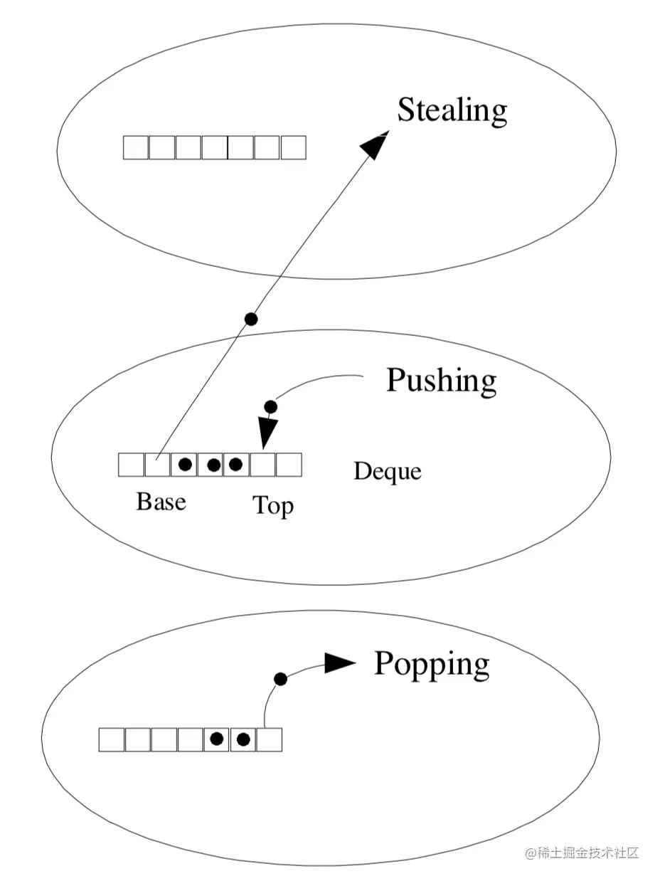 - 线程还可以偷取别的线程任务队列中的任务,模式为FIFO(First in First out)。