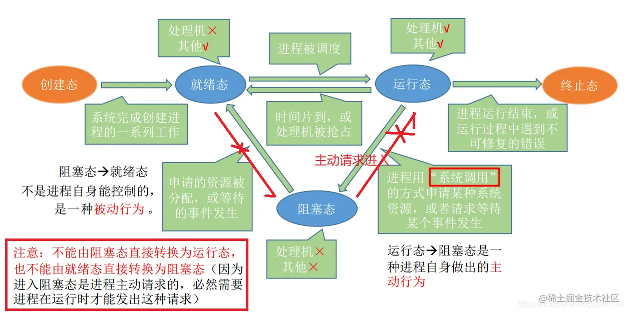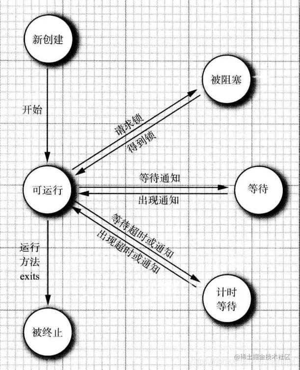 - 操作系统的线程也有它自己的状态。你Java有6种,Windows可能有N种,到了Linux系统,它可能有M种,加上各种操作系统版本满天乱飞,我也不知道具体有多少种了…..