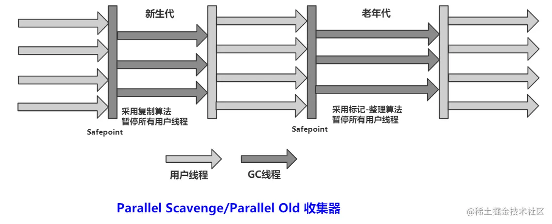 - Parallel Scavenge基于标记整理算法