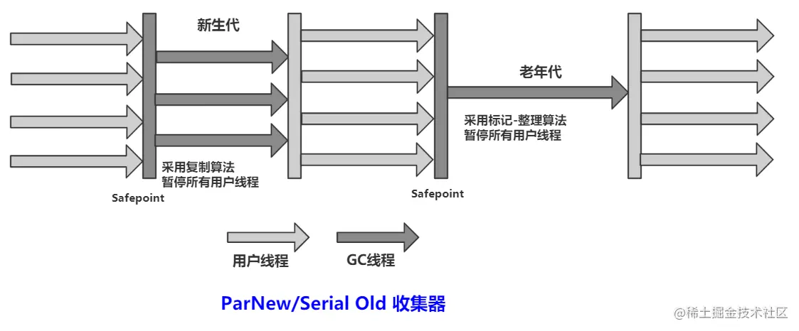 - 新生代支持多线程并行收集