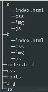 4.在项目vueA的dist目录下分别创建文件夹b和文件c.同时将vueB编译好的dist的中的所有文件拷贝到文件夹b的根目录下,将vueC编译好的dist的中的所有文件拷贝到文件夹c的根目录下,目录结构如下
