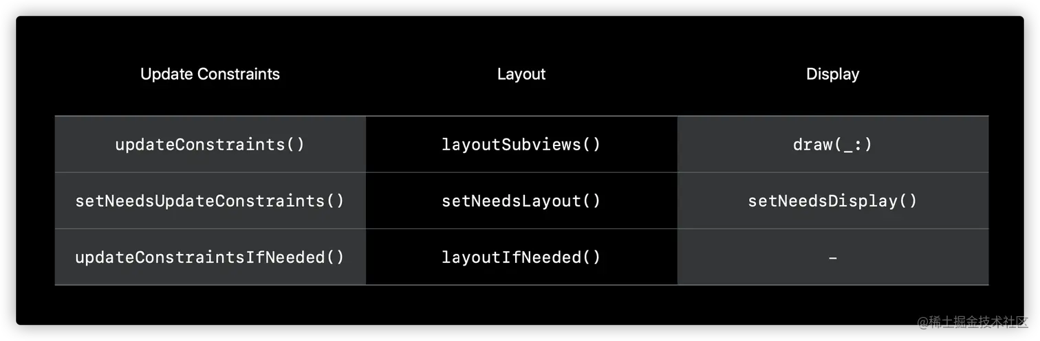 Auto Layout 不只有布局算法 Cassowary,还包含了布局在运行时的生命周期等一整套布局引擎系统,用来统一管理布局的创建、更新和销毁。了解 Auto Layout 的生命周期,是理解它的性能相关话题的基础。这样,在遇到问题,特别是性能问题时,我们才能从根儿上找到原因,从而避免或改进类似的问题。