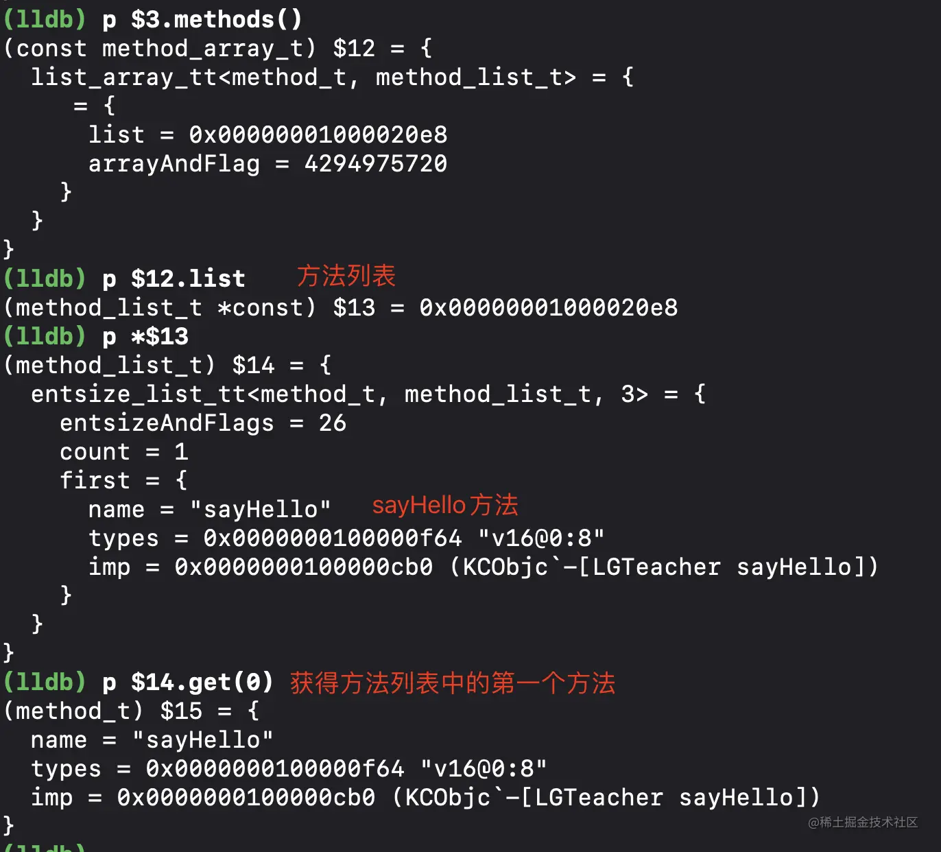 sayHelloc方法,但是 没有找到 sayByby方法的实现,为什么呢?这是因为:实例方法在存放在类中,类方法存在元类中,类方法的实现我们在下篇再来探讨。