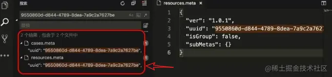 此时先关闭 Creator 编辑器,再任意删除其中一个 meta 文件,然后再打开 Creator 编辑器就可以解决。