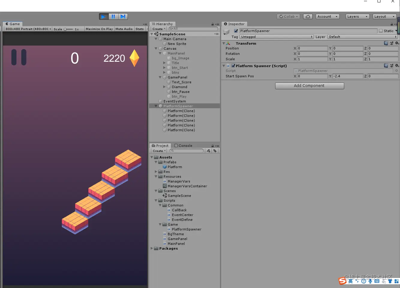 挂载GamePlay脚本到Game物体上