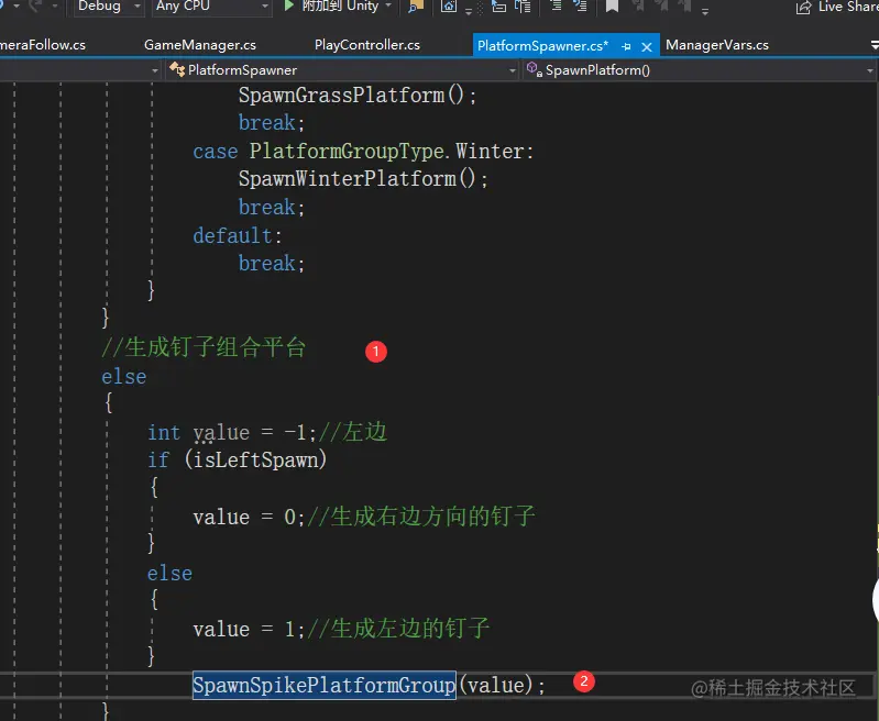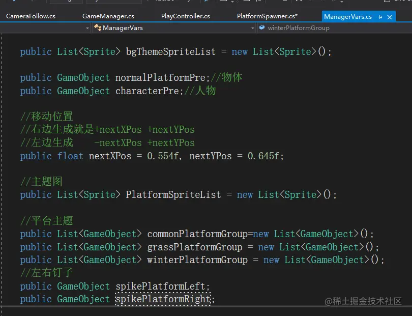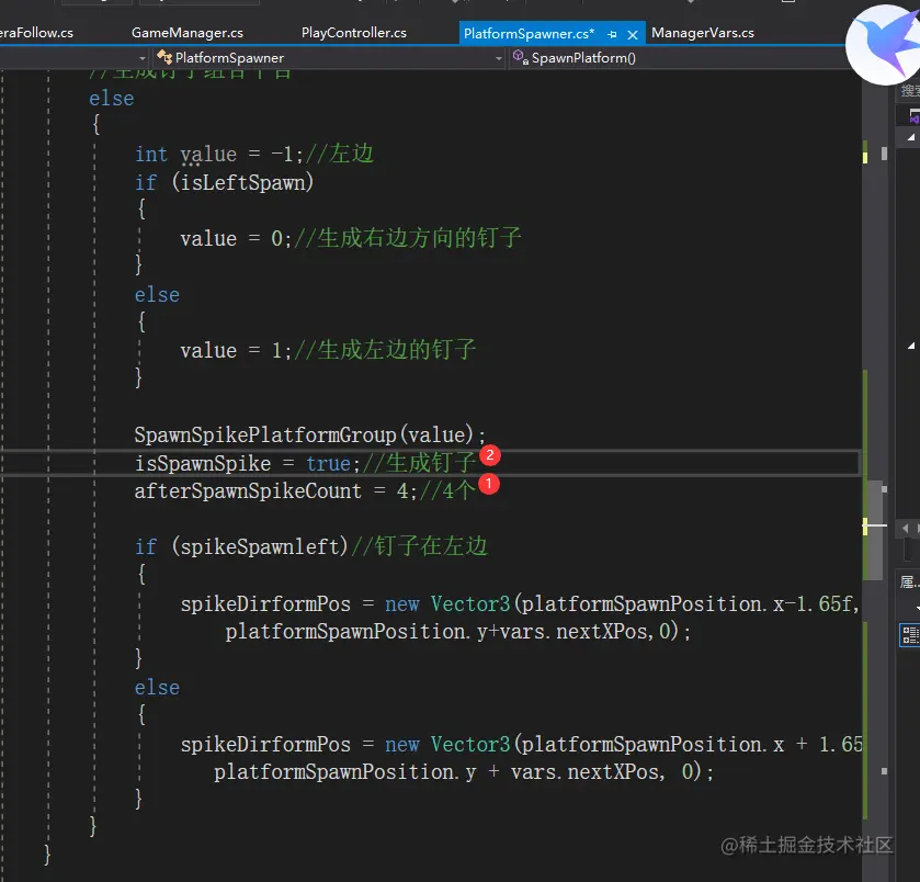 private int afterSpawnSpikeCount;//生成钉子平台之后需要在钉子方向生成的平台数量