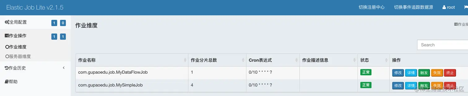 4),两个作业启动,就会在 作业维度中 看到以下信息: