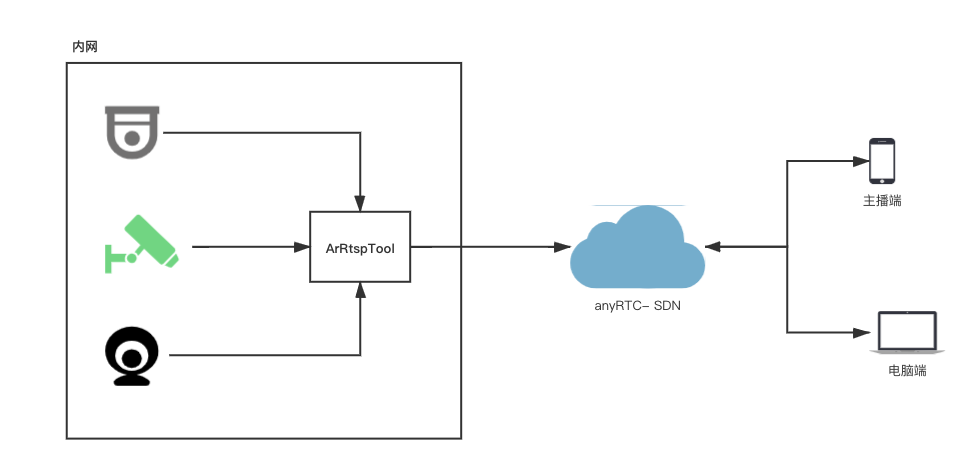 ArRtspTool是anyRTC开源的一款将rtsp流转为rtc的工具,这样rtsp的流可以不需要外网服务或IP地址,即可实现网页/H5无插件观看,小程序,APP等各种方式查看视频流。