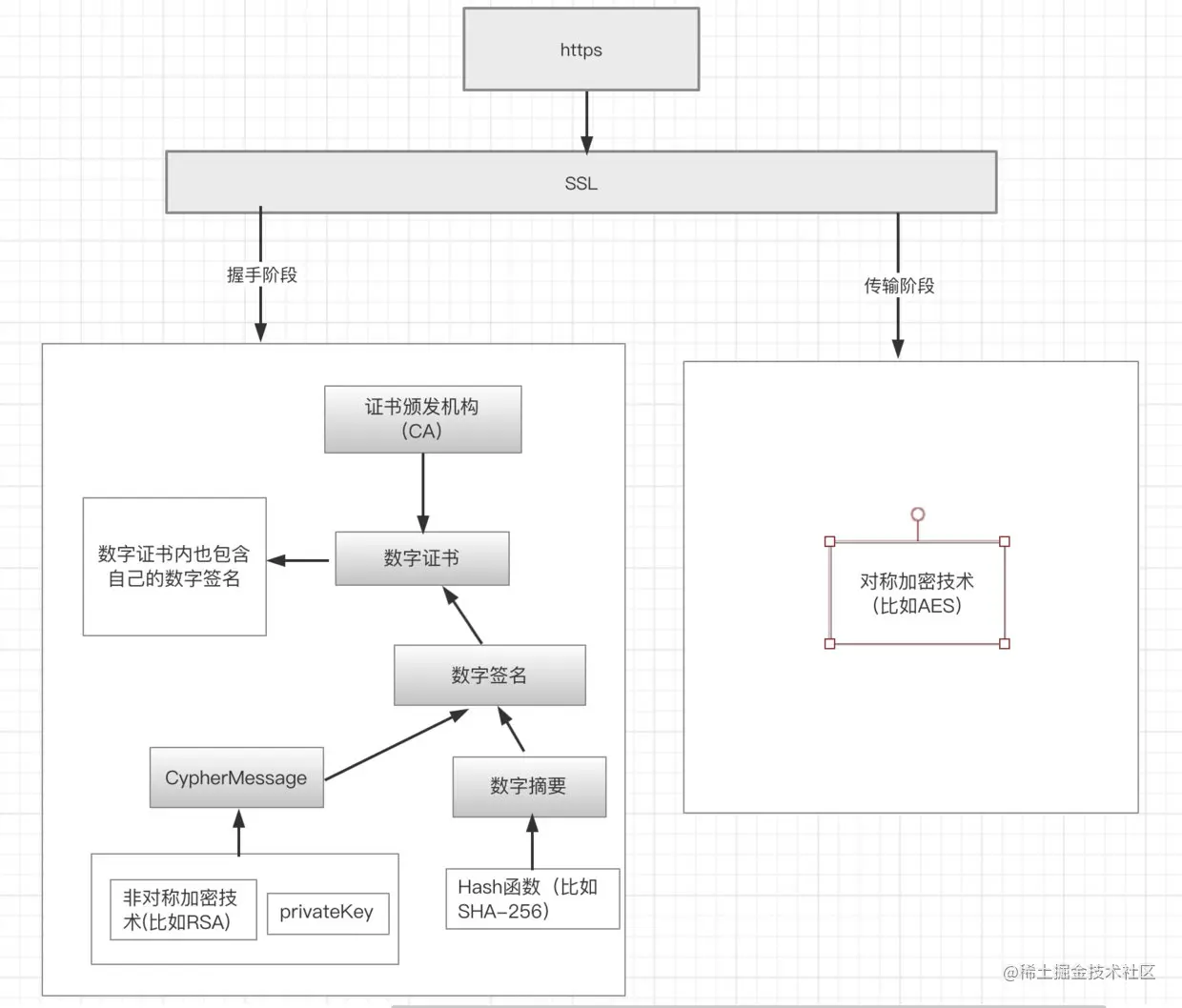 网络安全传输数据依赖 SSL 协议,而网络传输的协议是 HTTP, 因此构成了 HTTPS 协议。而 HTTPS 要保证客户端与服务器端的高效通信安全,必须使用对称加密算法,但是协商对称加密算法的过程,需要使用非对称加密算法来保证安全,然而直接使用非对称加密的过程本身也不安全,会有中间人篡改公钥的可能性,所以客户端与服务器不直接使用公钥,而是使用数字证书签发机构颁发的证书来保证非对称加密过程本身的安全。这样通过这些机制协商出一个对称加密算法,就此双方使用该算法对数据进行加密解密传输,从而解决了客户端与服务器端之间的通信安全问题。