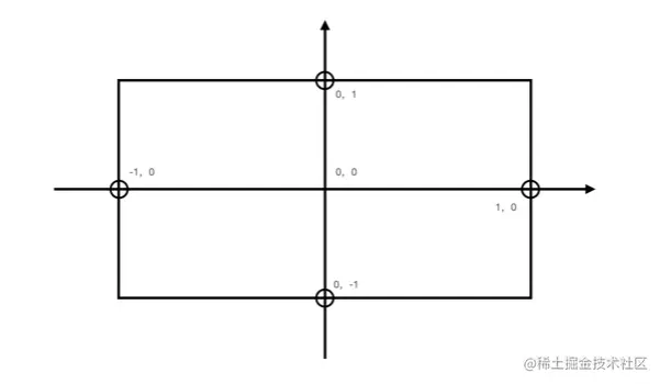 在正式介绍本小节的WebGL项目之前,先来简单说下WebGL使用的坐标系,它的坐标原点在Canvas中间,x轴从左到右为正方向,y轴从下到上为正方向,x轴的范围从-1到1,y轴也是如此,大致如下图所示