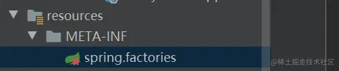 最后一步,也是最重要的一步,新建 META-INF 文件夹,然后创建 spring.factories 文件,里面指定需要被装配的类。