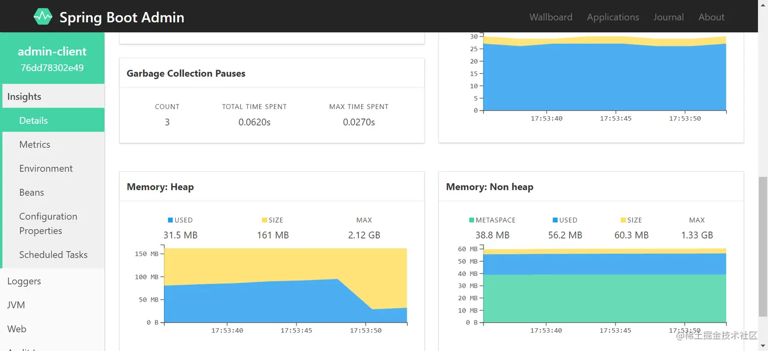 现在我们的 Admin-Client 服务实例已经注册到了 Admin-Server 上了。
