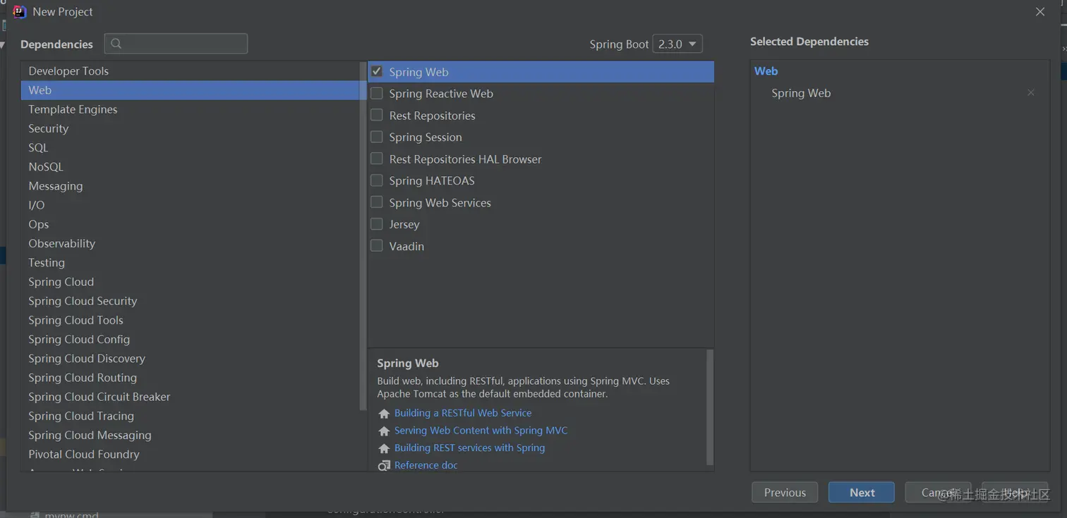 我们可以看到此时我们使用的 Spring Boot 的版本是 2.3.0.RELEASE。