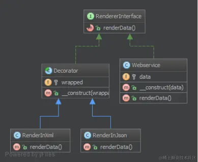 * 装饰者必须实现渲染接口类 RenderableInterface 契约,这是该设计