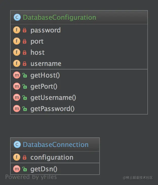 DatabaseConfiguration 被注入 DatabaseConnection 并获取所需的 $config 。如果没有依赖注入模式, 配置将直接创建 DatabaseConnection 。这对测试和扩展来说很不好。
