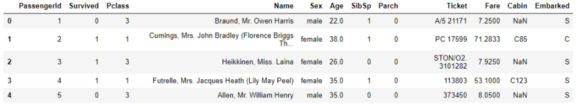#titaninc.head() 给出数据集的前五行。我们只打印前五行以检查数据集。