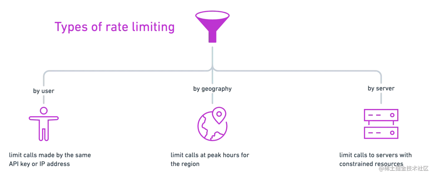 - 按服务器:如果你有多个服务器处理对API的不同调用,你可能会对访问更昂贵的资源实施更严格的速率限制。
