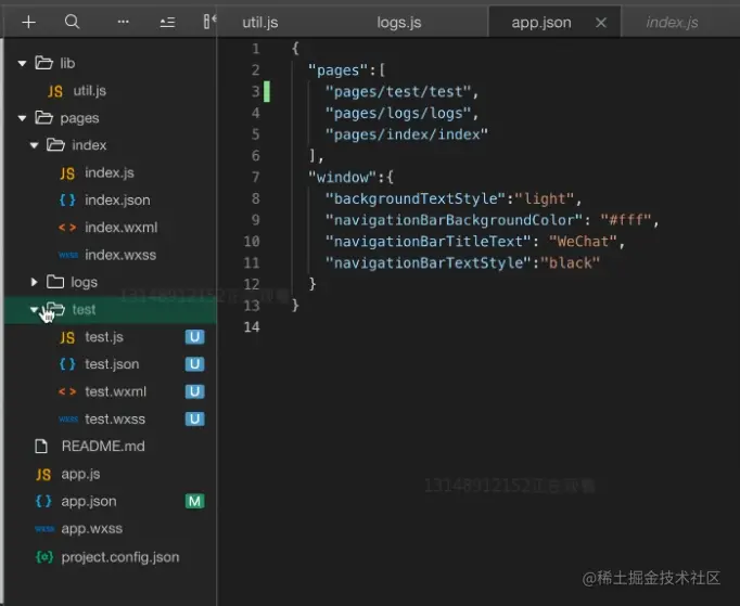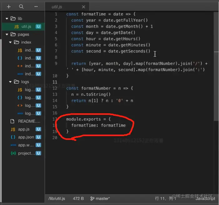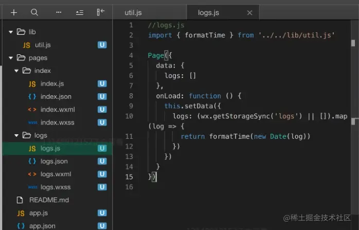 其中,util.js 里面有个处理时间的函数,还有导出。