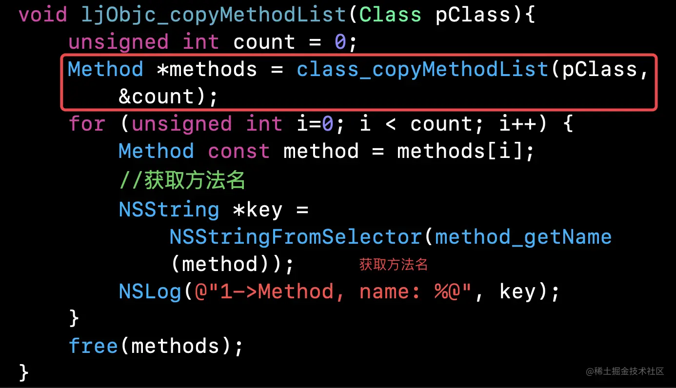 对class_copyMethodList进行分析,在源码找到方法实现,发现红框方法。很眼熟,这个方法就是获取方法列表。