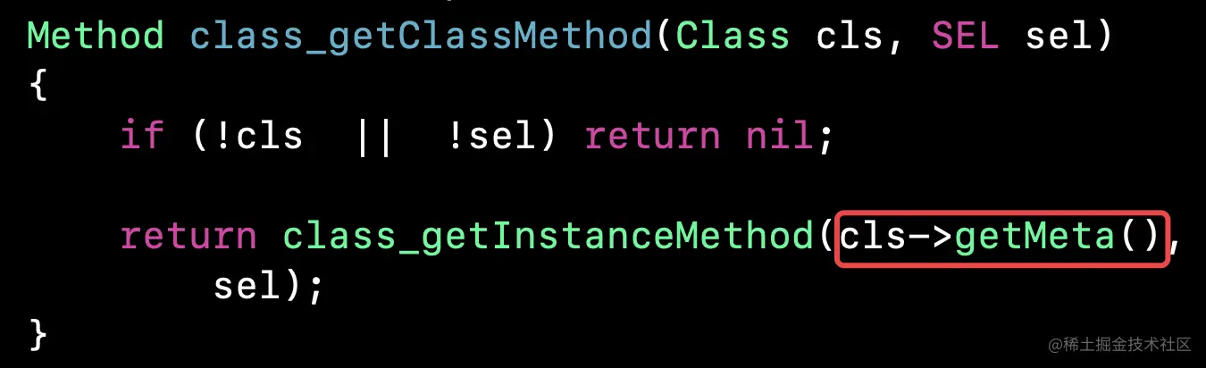 发现也是调用的class_getInstanceMethod只是参数不同,我们进去看下cls->getMeta()方法