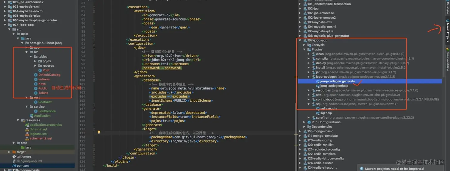 在实际开始 jooq 的 curd 之前,需要先生成对应的表结构对象,这里也是借助 maven 插件来完成