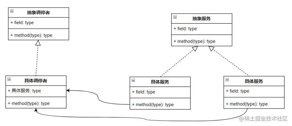 调停者模式的代码实现和门面模式几乎相同。两者只是因为应对与不同的位置而诞生,本质相同。