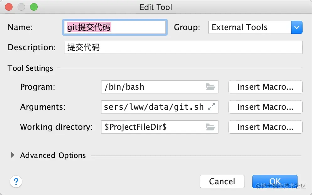 对的,你可以把shell脚本单独放一个文件夹,然后在Arguments那里把路径复制过去。