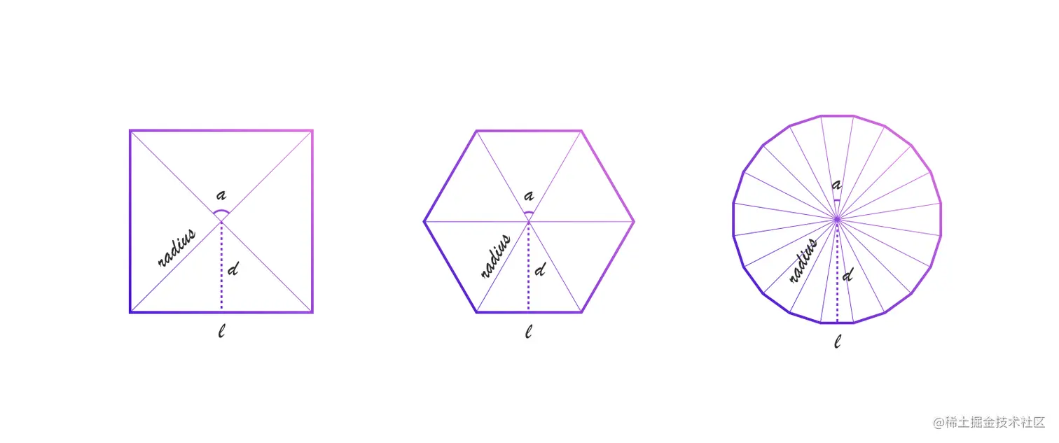 从 y 轴视角看切片,是一个正多边形。每一切片间的间隔角度为360度除以切片数量,而切片的宽度则需要通过三角函数来计算。