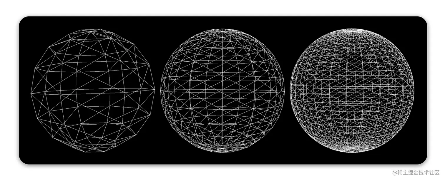 而目前在计算机中模拟弧面,只能通过切分的平面进行,切分的平面越多弧面就越平滑。因此阿三中的所有 3D 模型都是一个多面体。虽然切片的算法全权由阿三处理,但切片的分布需要做进一步的了解,以帮助我们了解球形贴图的相关细节。
