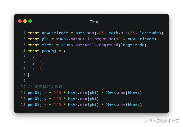 具体的鼠标位移与球体经纬度的转化公式可查看完整 demo:codesandbox.io/s/threejs-p…