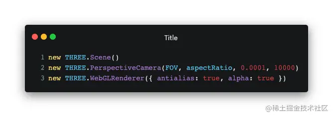 阿三的三维体系中有几个基本对象:场景(Scene)、镜头(Camera)、渲染器(WebGLRenderer)。整个体系的建立这三个对象缺一不可。