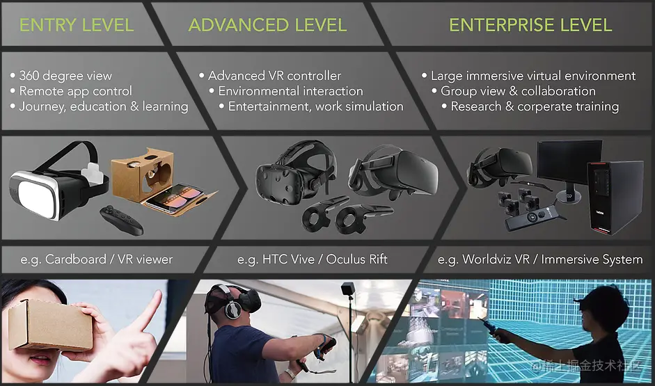 广泛意义上来说,只要符合模拟三维空间这一行为,就可以称为 VR,手机、电脑、大荧幕、VR 眼镜甚至于空气,都可以成为 VR 的载体。