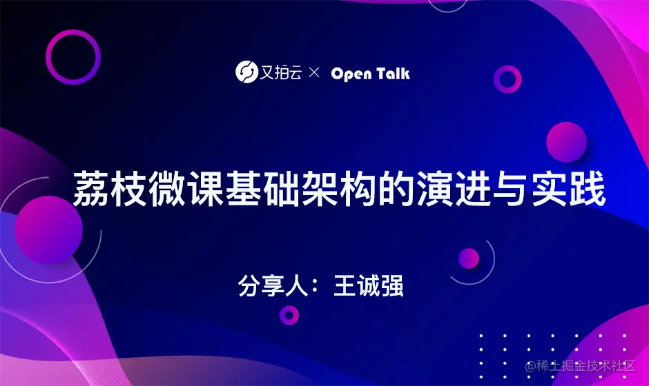 本文整理自又拍云举办的微服务架构设计与实践|Open Talk 线上公开课,荔枝微课基础架构负责人王诚强做的题为《荔枝微课基础架构的演进与实践 》 的分享。本次活动还邀请了Apache APISIX 和又拍云等企业的技术专家分享 API、Service Mesh 等相关实战经验。
