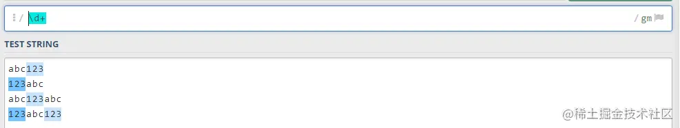 匹配了多个数字,其中\d 代表匹配数字,+表示至少匹配 一次(贪婪)