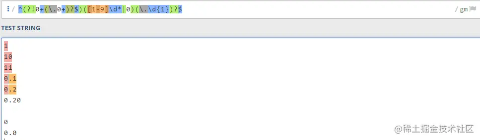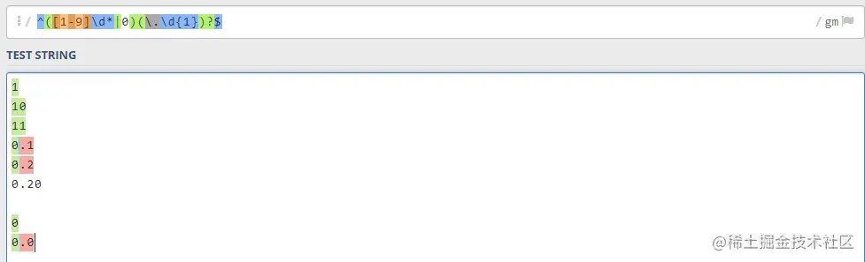 这段正则看起来很完美,可是却忽略了一些,因为不考虑小整数情况下,零是不可能存在在整数位上的,但如果支持小数的话,就会出现一些问题,如 0 0.0 等
