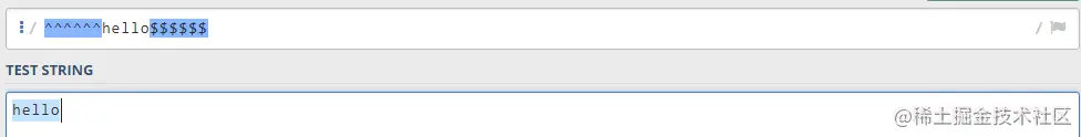 所以对于 /^hello/ 其实等价于 /^^^^^^hello$$$$/