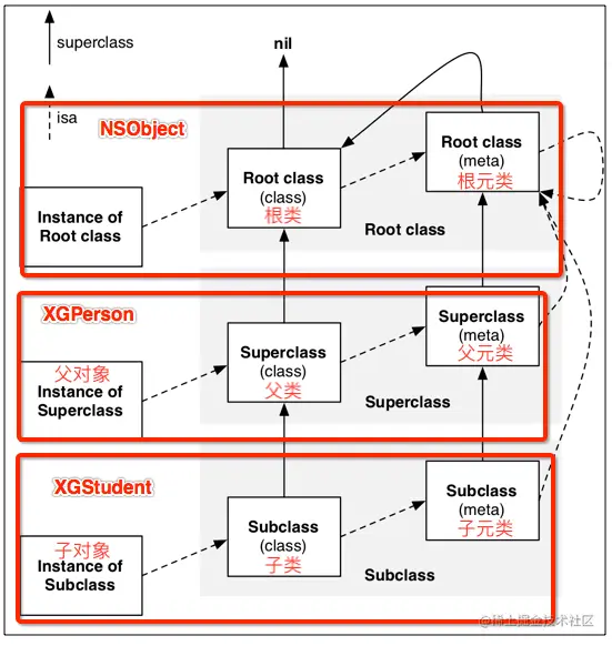 // LGPerson vs 元类 (根元类) (NSObject)