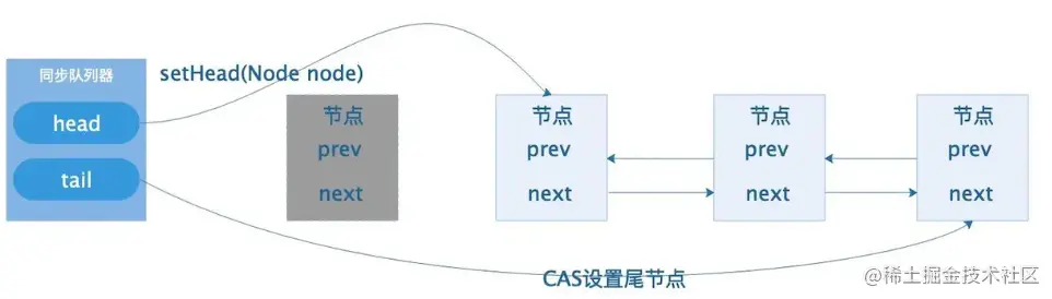 当前**线程到头部的时候,尝试CAS更新锁状态,如果更新成功表示该等待线程获取成功。从头部移除。**因为等待队列是从尾进从头出
