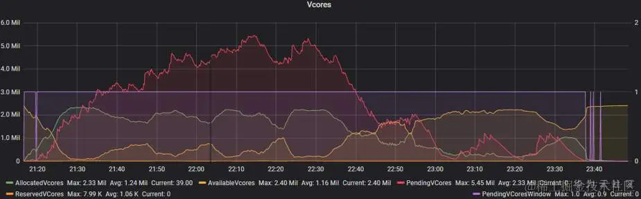 下图是分别在Superior和Capacity下关于“资源利用率”的监控视图:可以看出Superior近乎100%的资源使用率,而Capacity下资源无法得到充分利用。