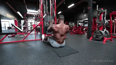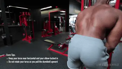 身体躯干保持接近挺直不要弯曲,手肘向内弯曲;当你向上拉器械时身体不要旋转。 手肘向内弯曲,可以理解为让大臂尽可能贴住身子,防止肱三头肌肉代偿