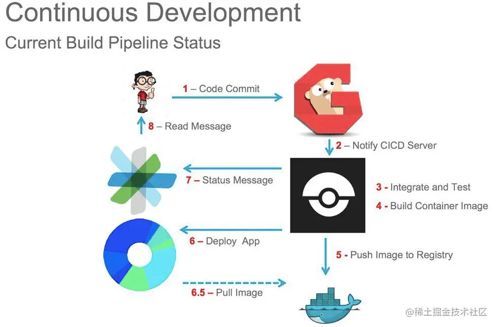 持续部署(Continous Delivery,CD)在持续集成的基础上,将集成后的代码部署到真实运行环境中(本文指部署到kubernetes集群)。交付团队 ->版本控制 ->构建和单元测试 ->自动验收测试 -> 发布
