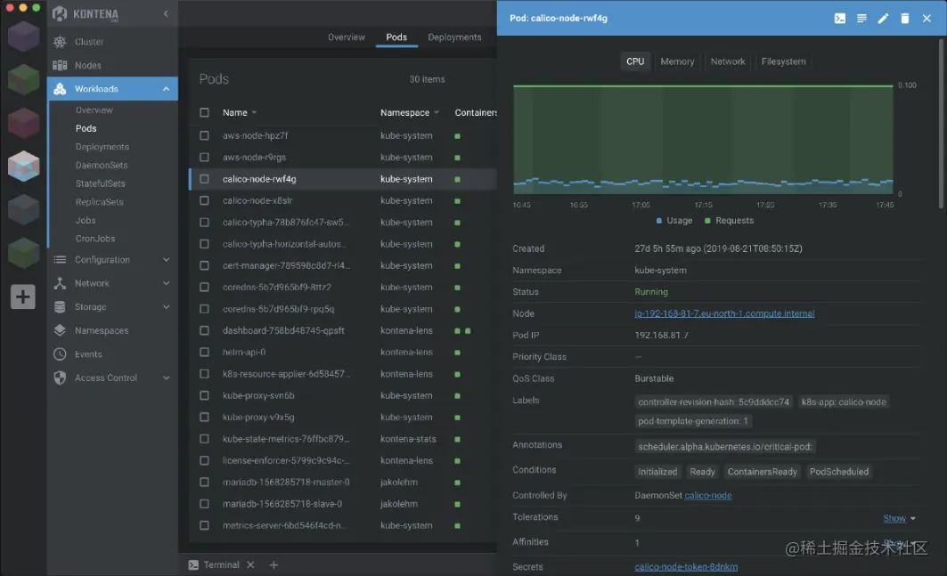 Lens 一个开源的管理 Kubernetes 集群的IDE,支持 MacOS, Windows 和 Linux。通过 Lens,我们可以很方便地管理多个 Kubernetes 集群。