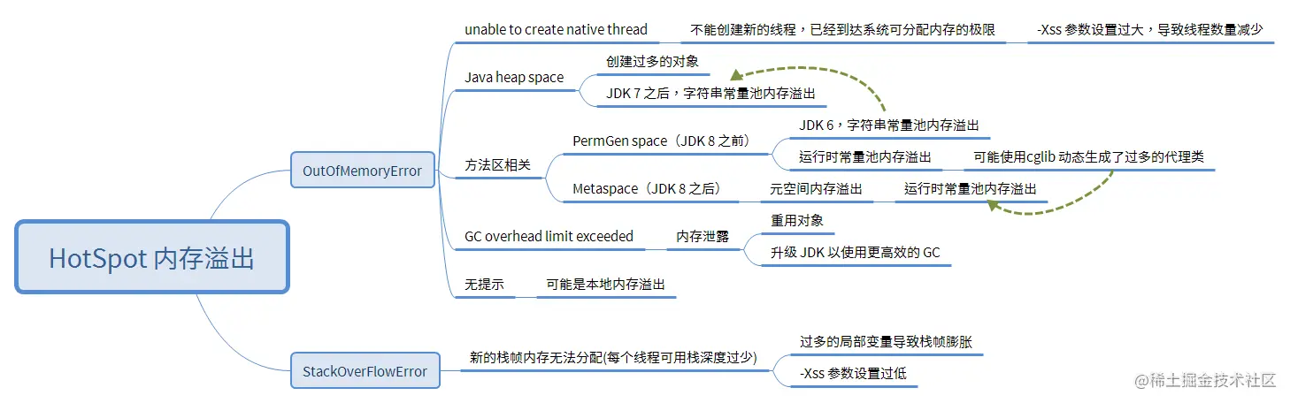 针对本章代码所涉及到的 OOM 及其产生原因,笔者在这里使用思维导出整理出来。